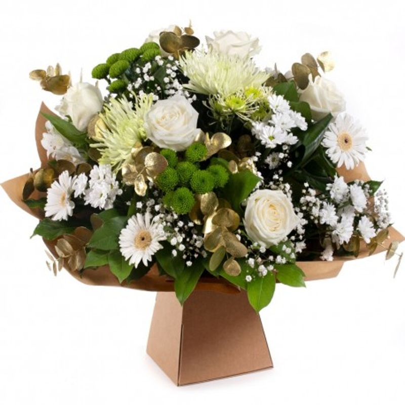 A beautiful calm collection of super luxurious flowers with hints of seasonal glamour to impress the most discerning recipient.